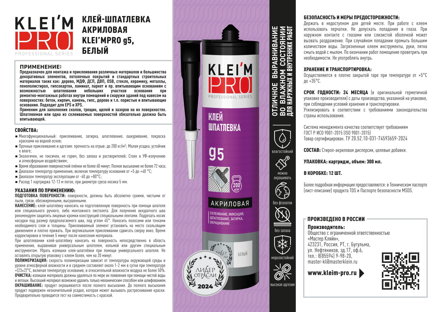 Клей-шпатлевка акриловая KLEI`MPRO g5 белая 300 мл, картридж