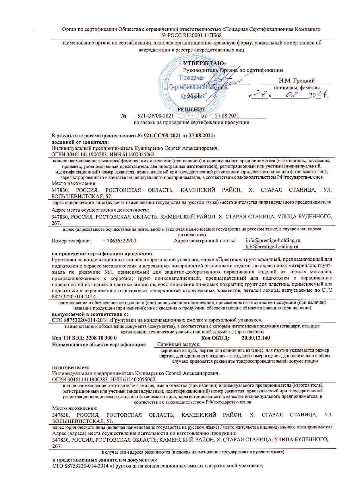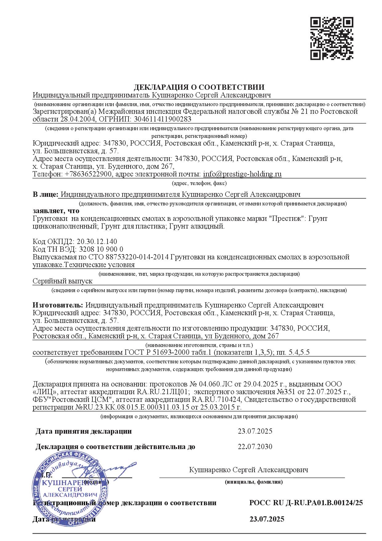 Аэрозольный грунт алкидный ПРЕСТИЖ серый 520мл