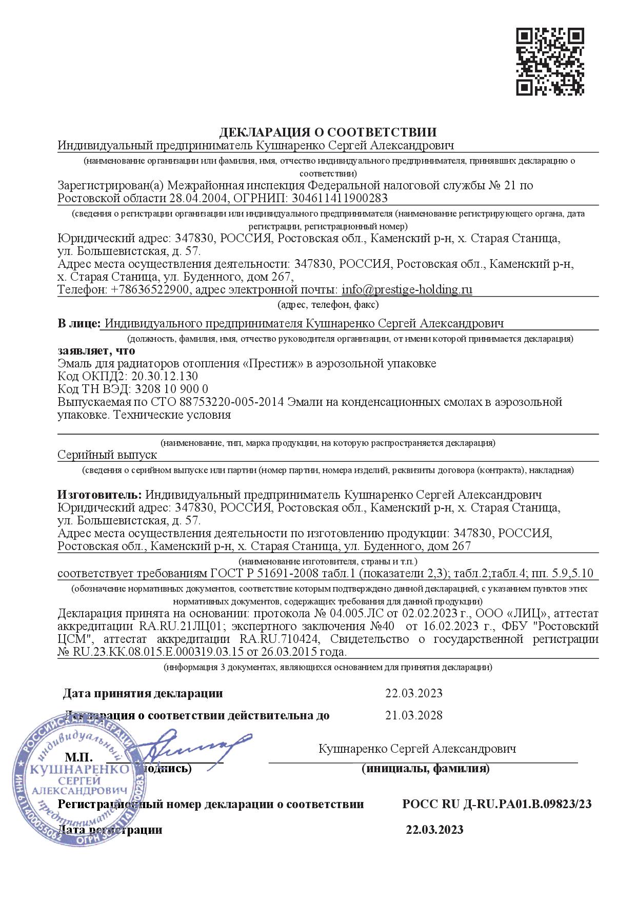 Аэрозольная эмаль для радиаторов ПРЕСТИЖ белая матовая 520мл