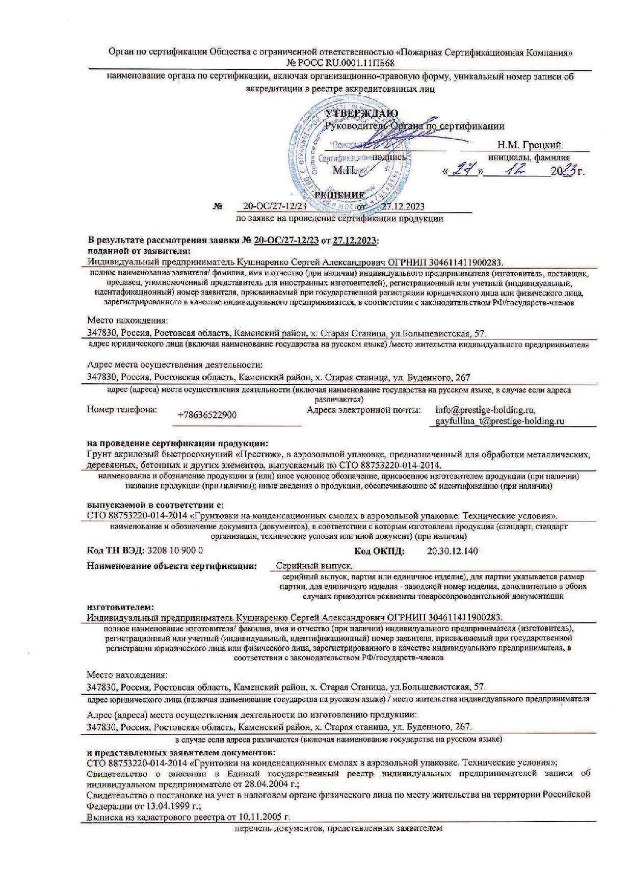Аэрозольный грунт акриловый ПРЕСТИЖ серый 520мл