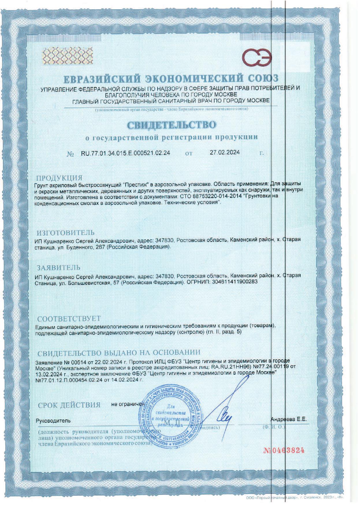 Аэрозольный грунт акриловый ПРЕСТИЖ черный 520мл