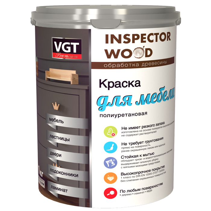Краска для мебели полиуретановая VGT полуматовая База С 1кг/0,8л