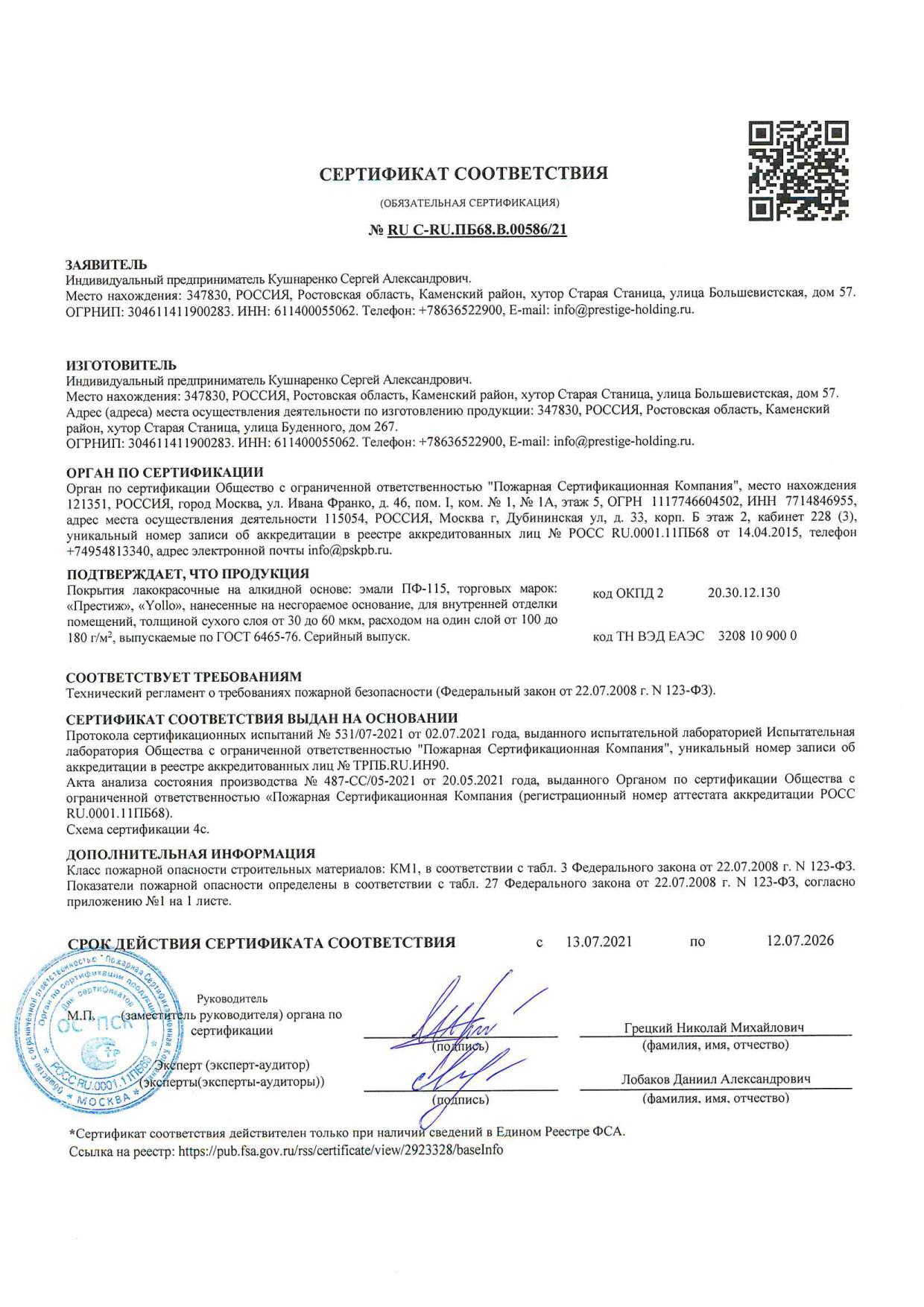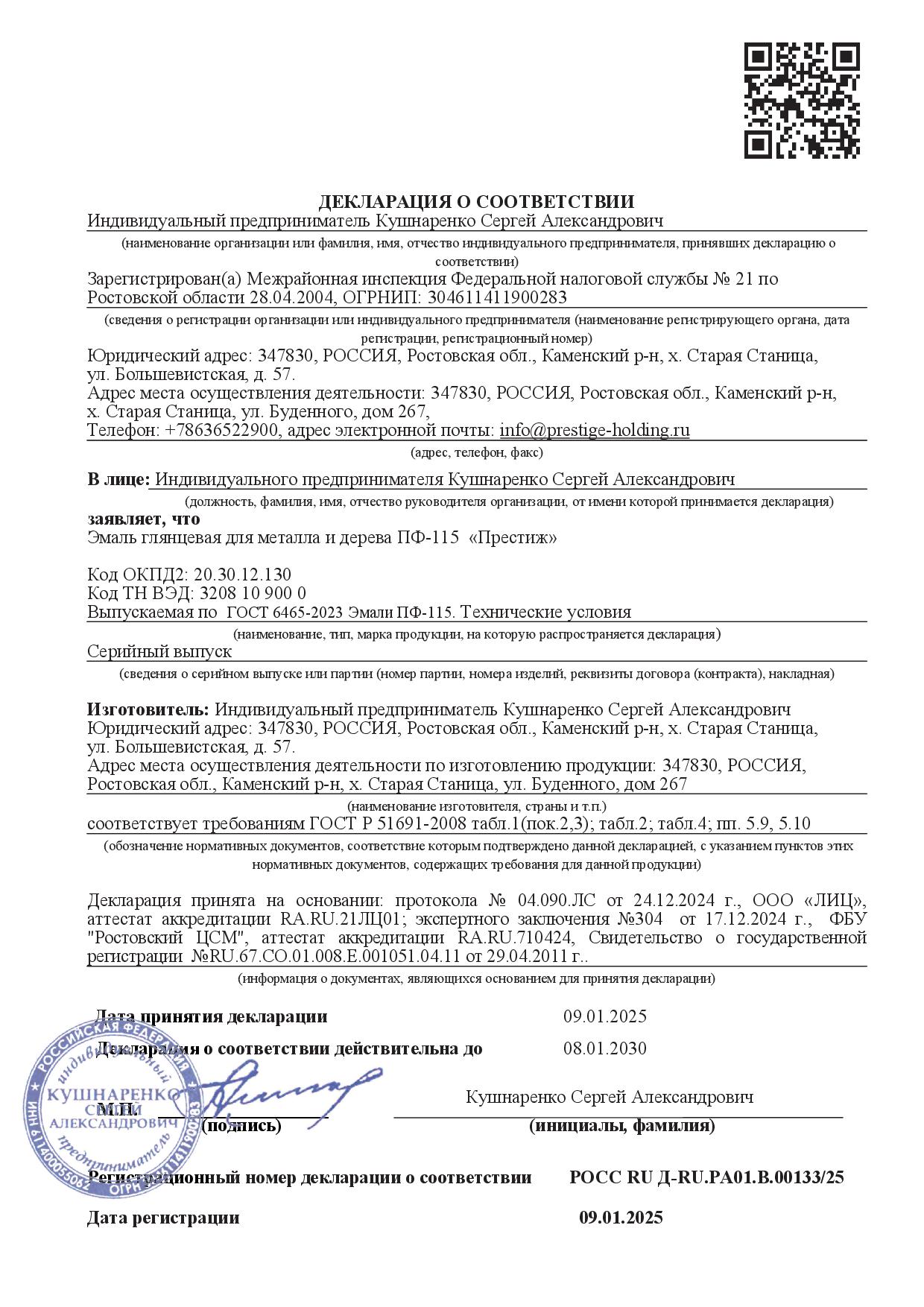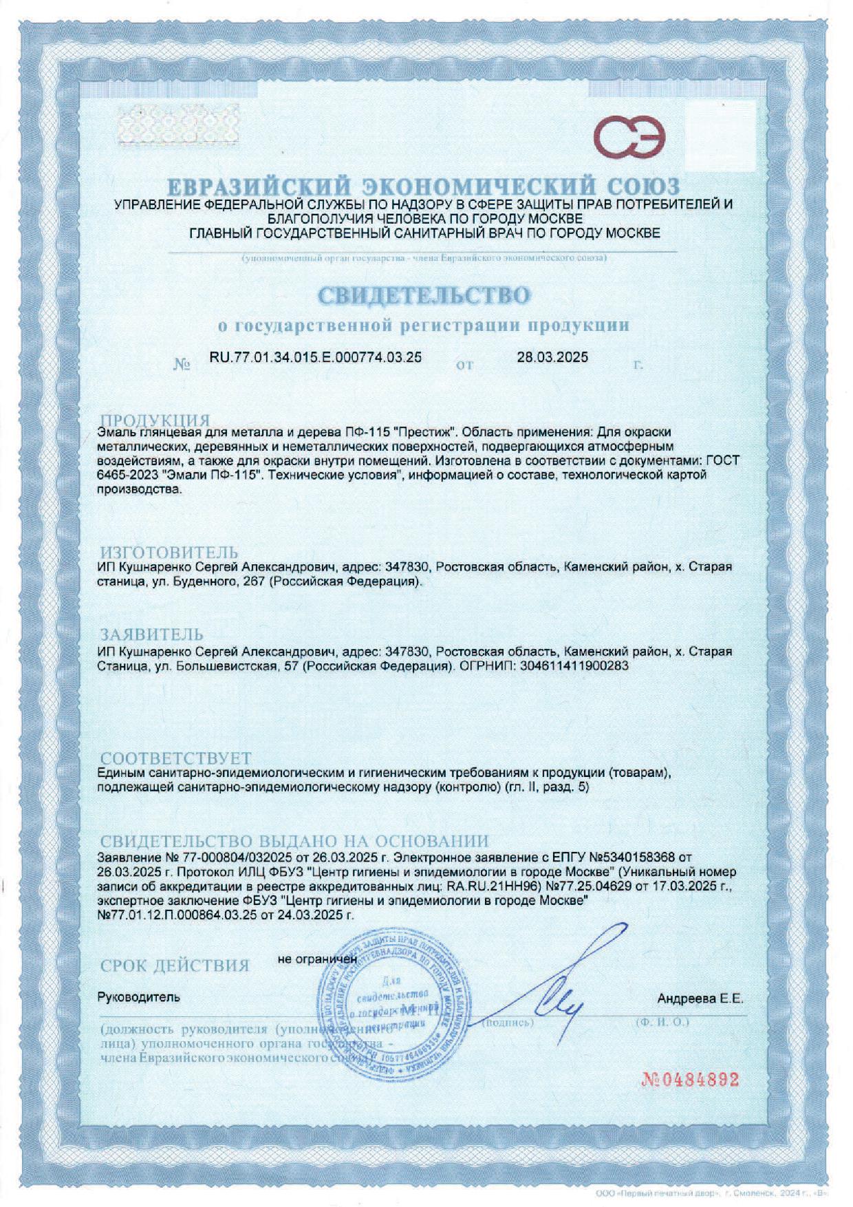 Эмаль ПФ-115 ПРЕСТИЖ желтая глянцевая ГОСТ 0,9кг