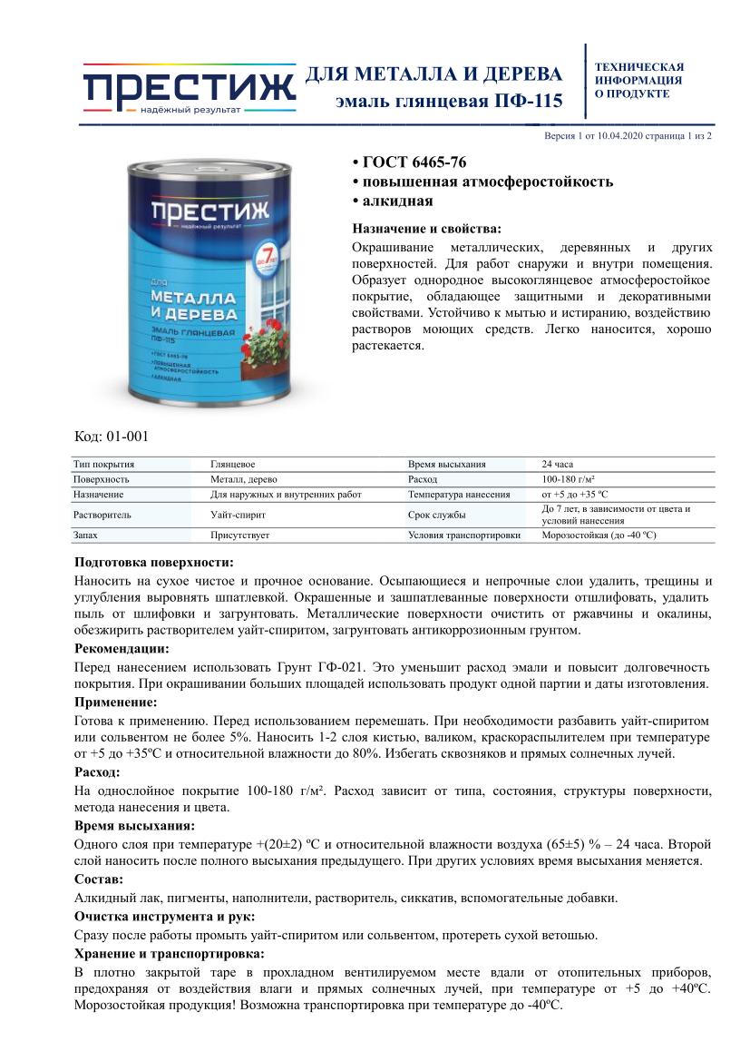Расход: 100–180 г/м² на однослойное покрытие. Эмаль рекомендуется наносить в 1–2 слоя. Разбавитель: уайт–спирит или сольвент (не более 5%), а также их смесь (1:1).