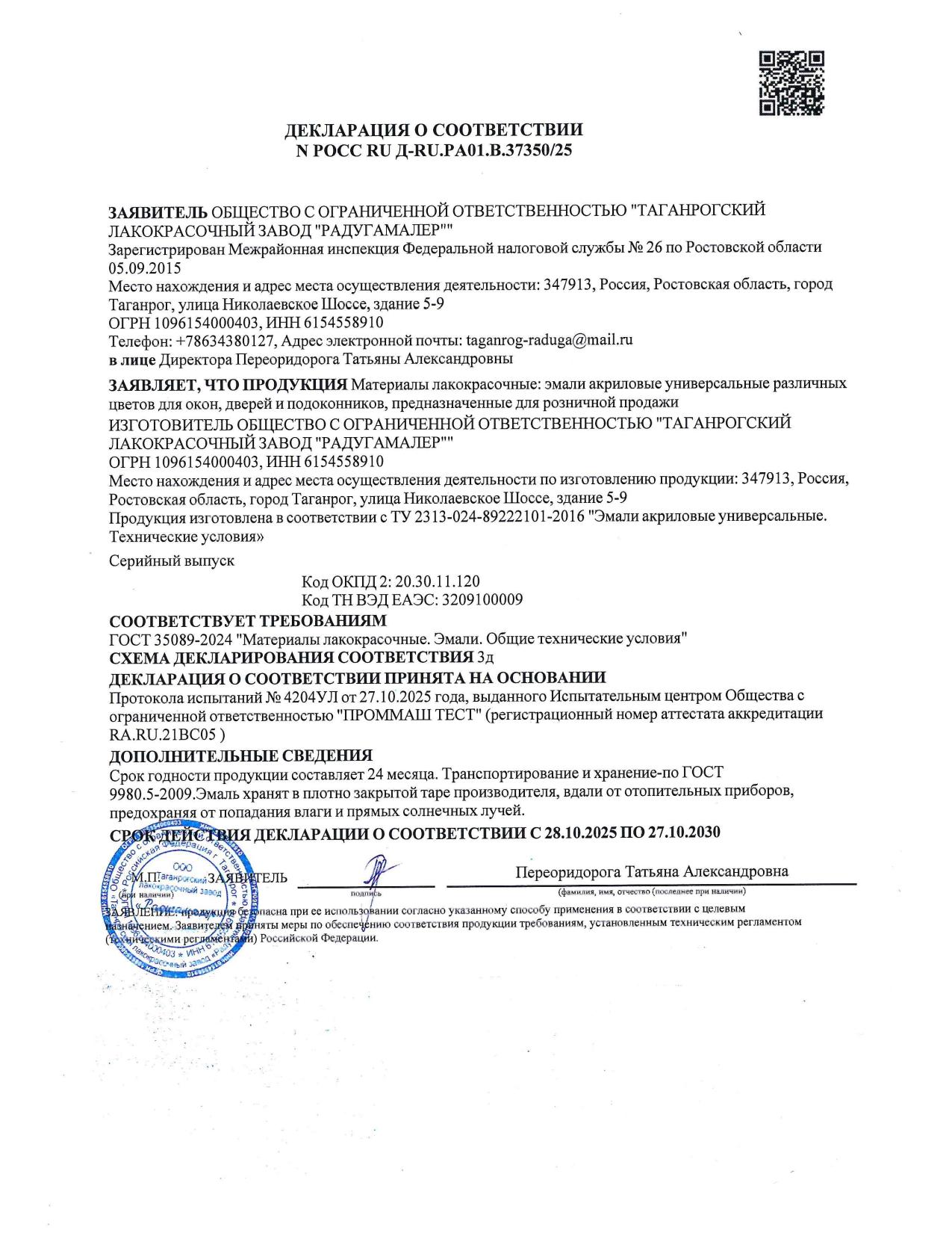Эмаль акриловая РАДУГАМАЛЕР универсальная белая 0,9кг