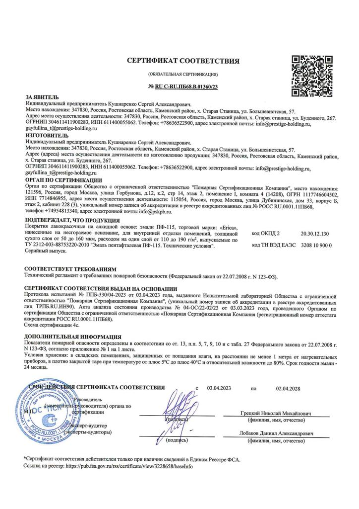 Эмаль ПФ-115 Erica салатная 0,8кг