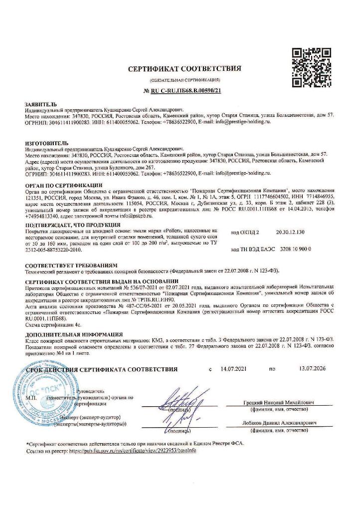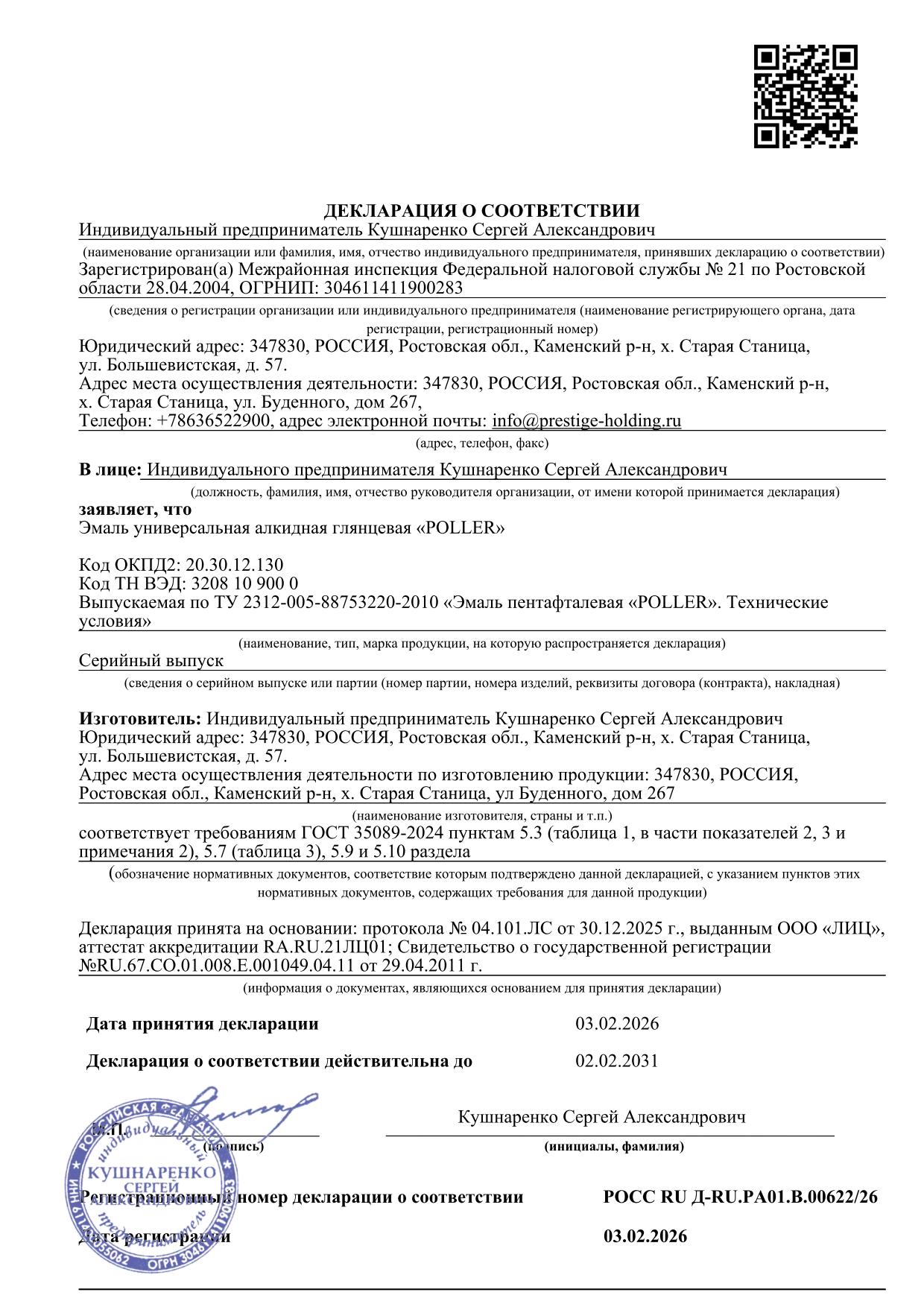 Эмаль алкидная Poller A.R.T. универсальная белая 0,8л
