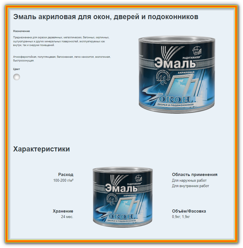 Предназначена для окраски деревянных, металлических, бетонных, кирпичных, оштукатуренных и других минеральных поверхностей, эксплуатируемых как внутри, так и снаружи помещений.