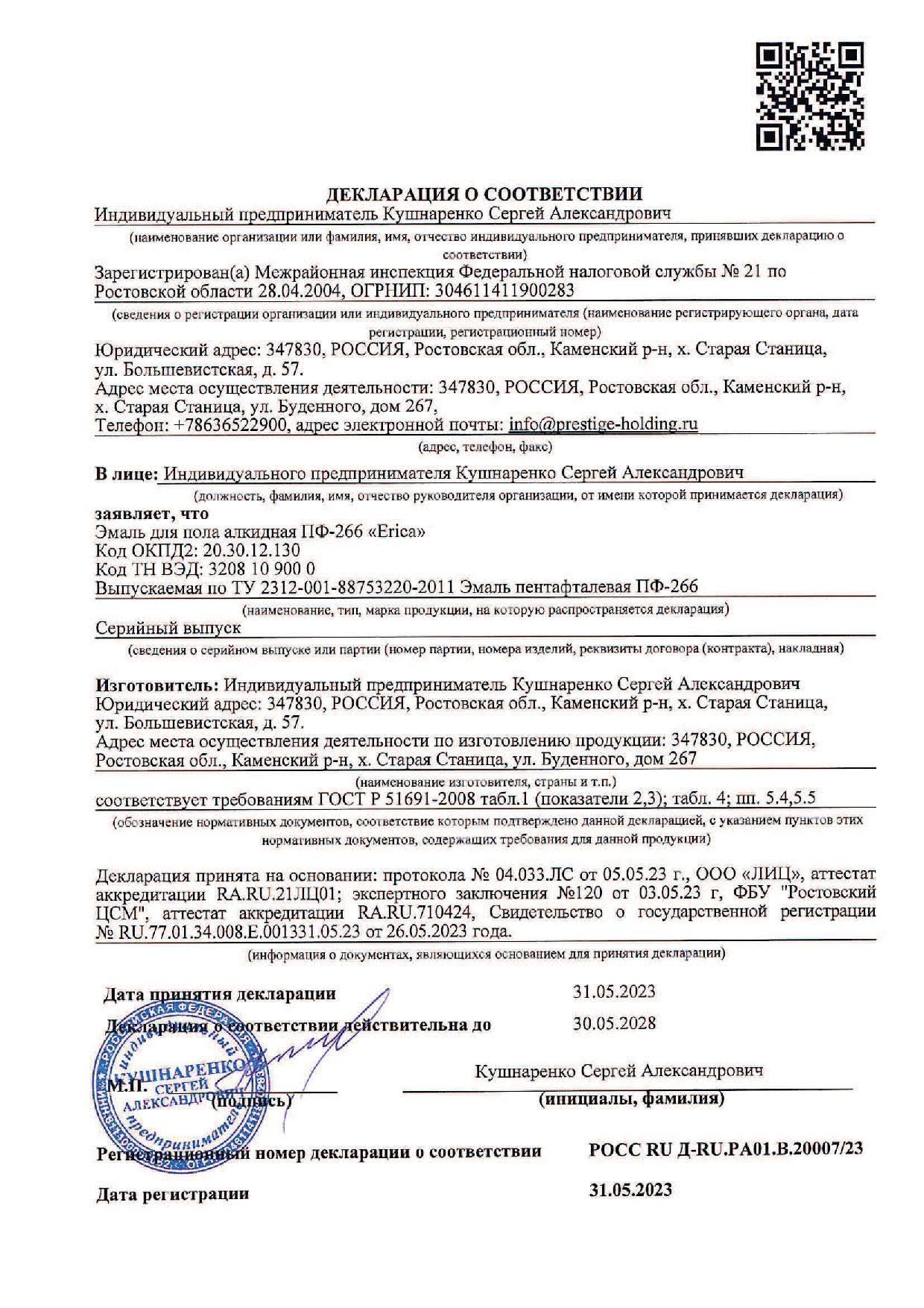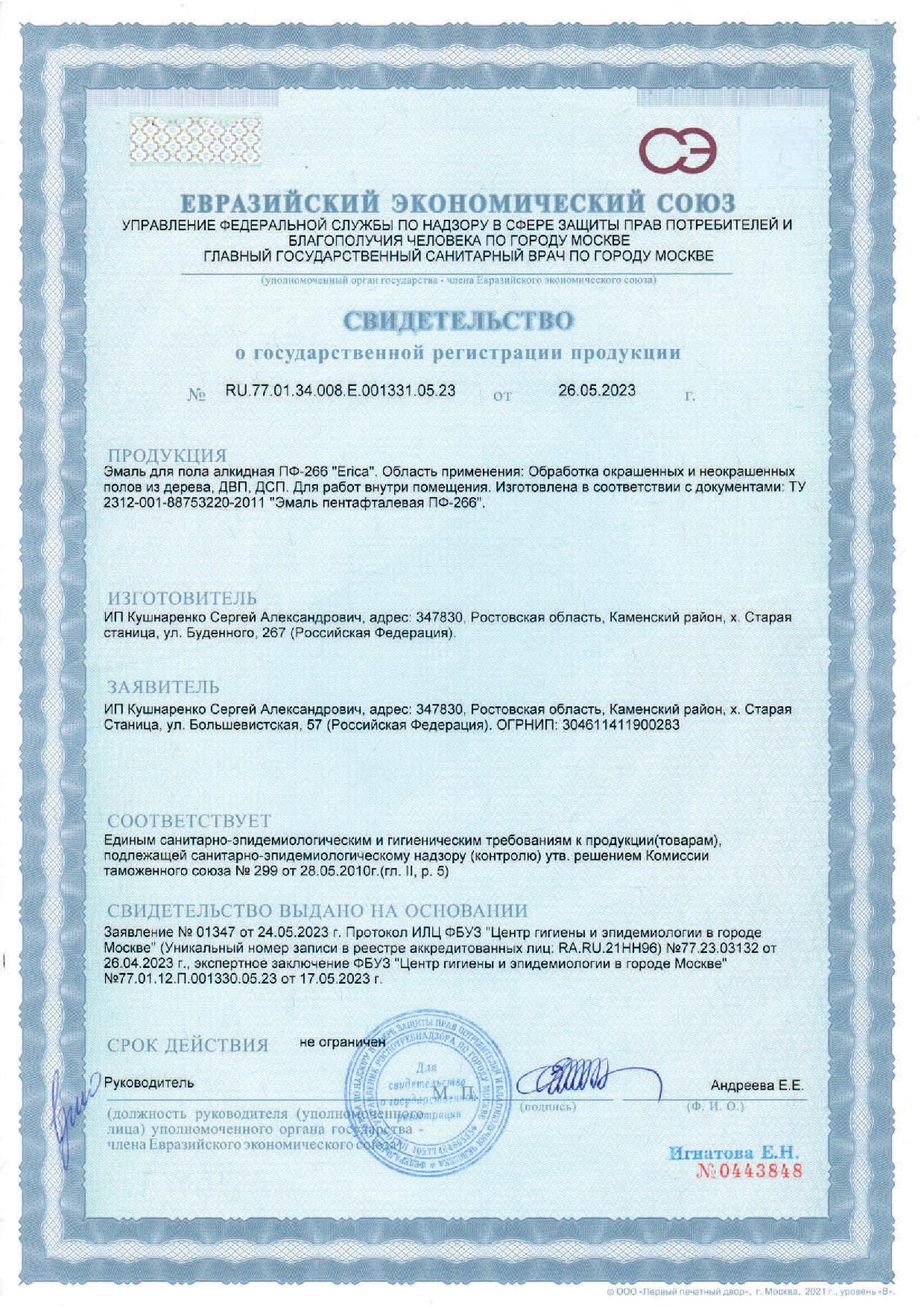 Эмаль для пола ПФ-266 Erica золотисто-коричневая 1,8кг
