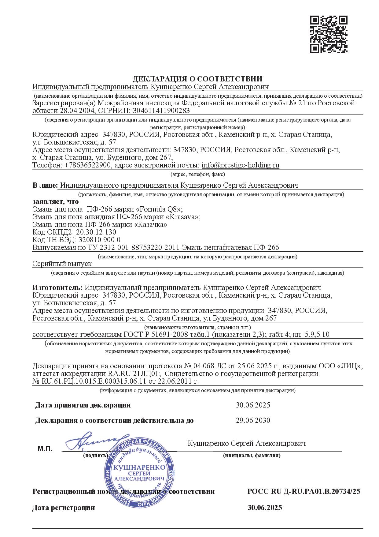 Эмаль для пола ПФ-266 ФОРМУЛА Q8 золотисто-коричневая 2,6кг