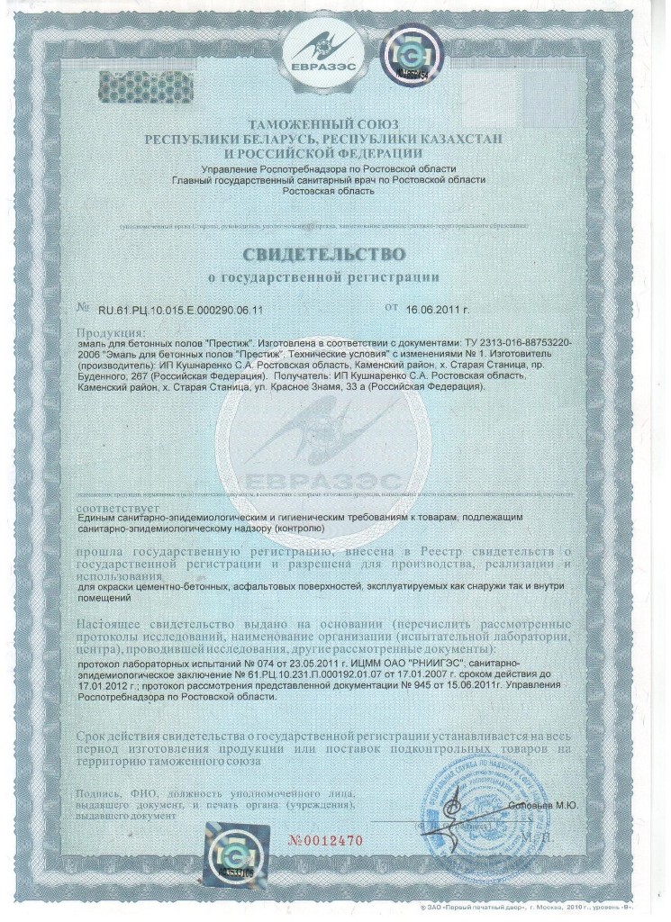 Защитно-декоративное окрашивание бетонных и других минеральных поверхностей. Для работ снаружи и внутри помещения. Высокая стойкость к химическим реагентам и износостойкость позволяют использовать эмаль для окраски бетонных поверхностей в цехах, лабораториях, складских и производственных помещениях. Легко наносится, хорошо растекается по поверхности пола, выравнивая мелкие неровности. После высыхания образует гладкое покрытие, стойкое к мытью и истиранию, продолжительному воздействию воды и растворов моющих средств. Атмосферостойкая. Укрепляет, предотвращает пылеотделение. Выпускается различных цветов.
