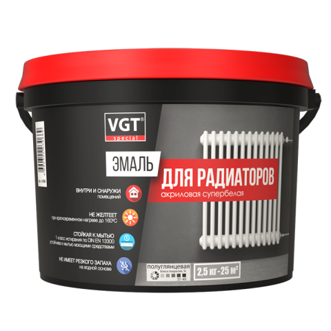 Эмаль для радиаторов акриловая ВД-АК-1179 VGT "Профи" полуглянцевая супербелая 2,5кг