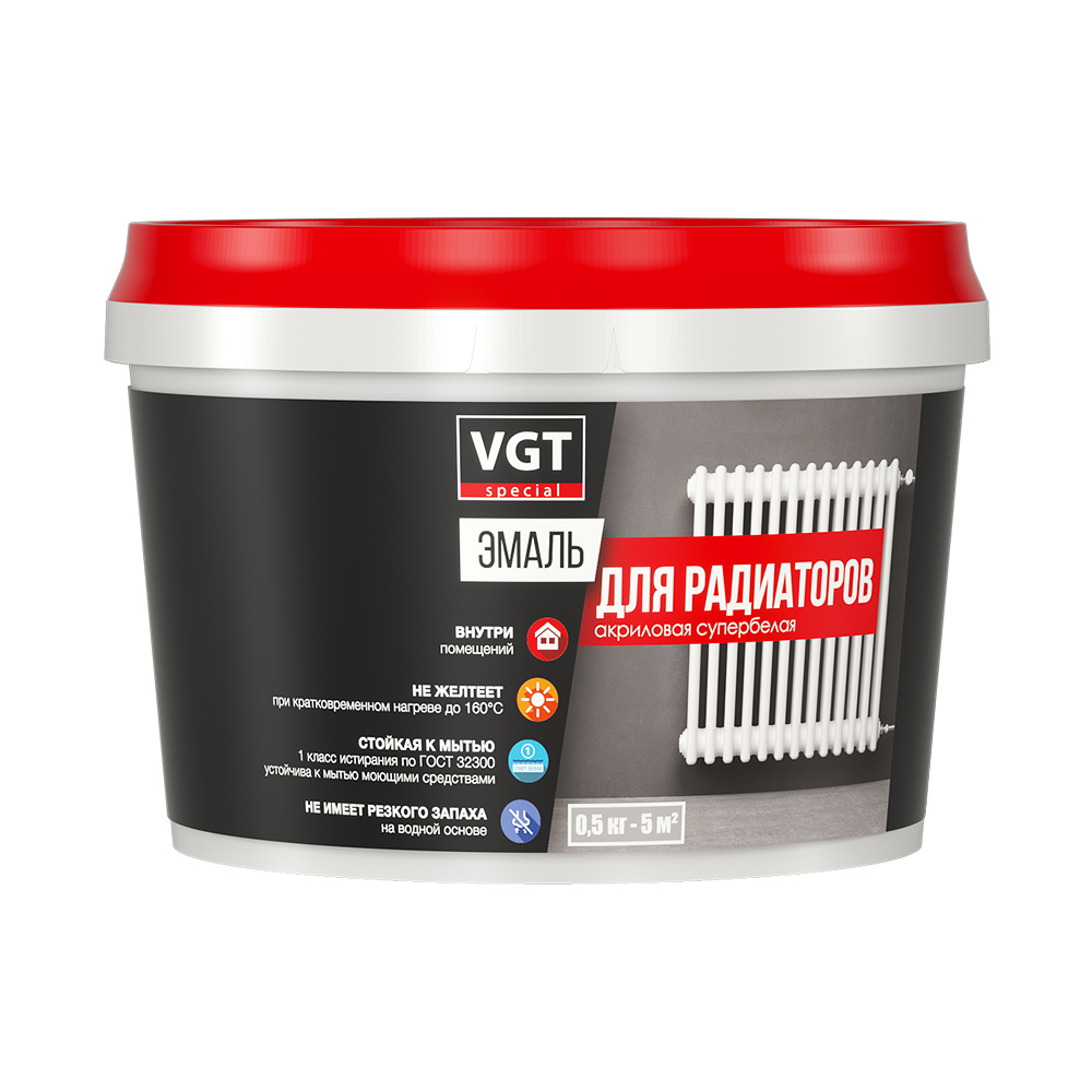 Эмаль для радиаторов акриловая ВД-АК-1179 VGT "Профи" полуглянцевая супербелая 0,5кг