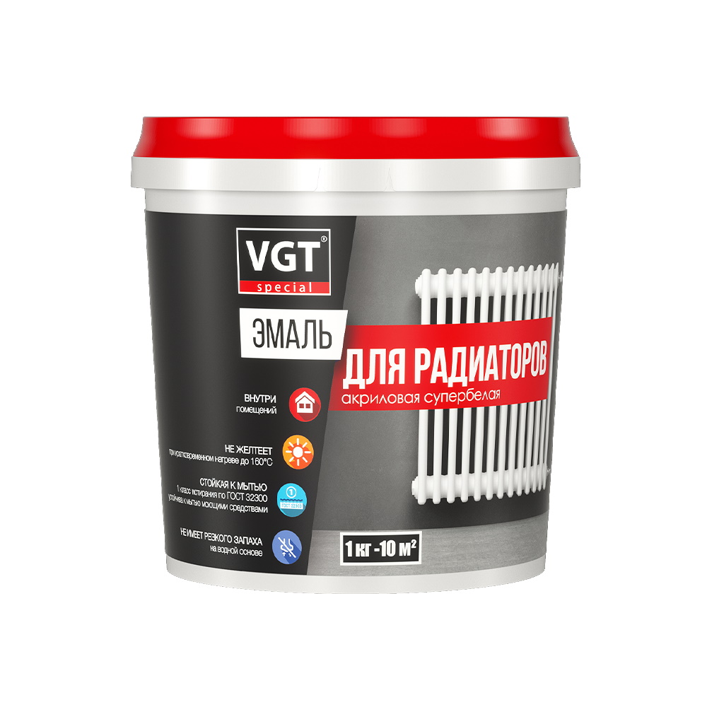 Эмаль для радиаторов акриловая ВД-АК-1179 VGT "Профи" матовая супербелая 1кг