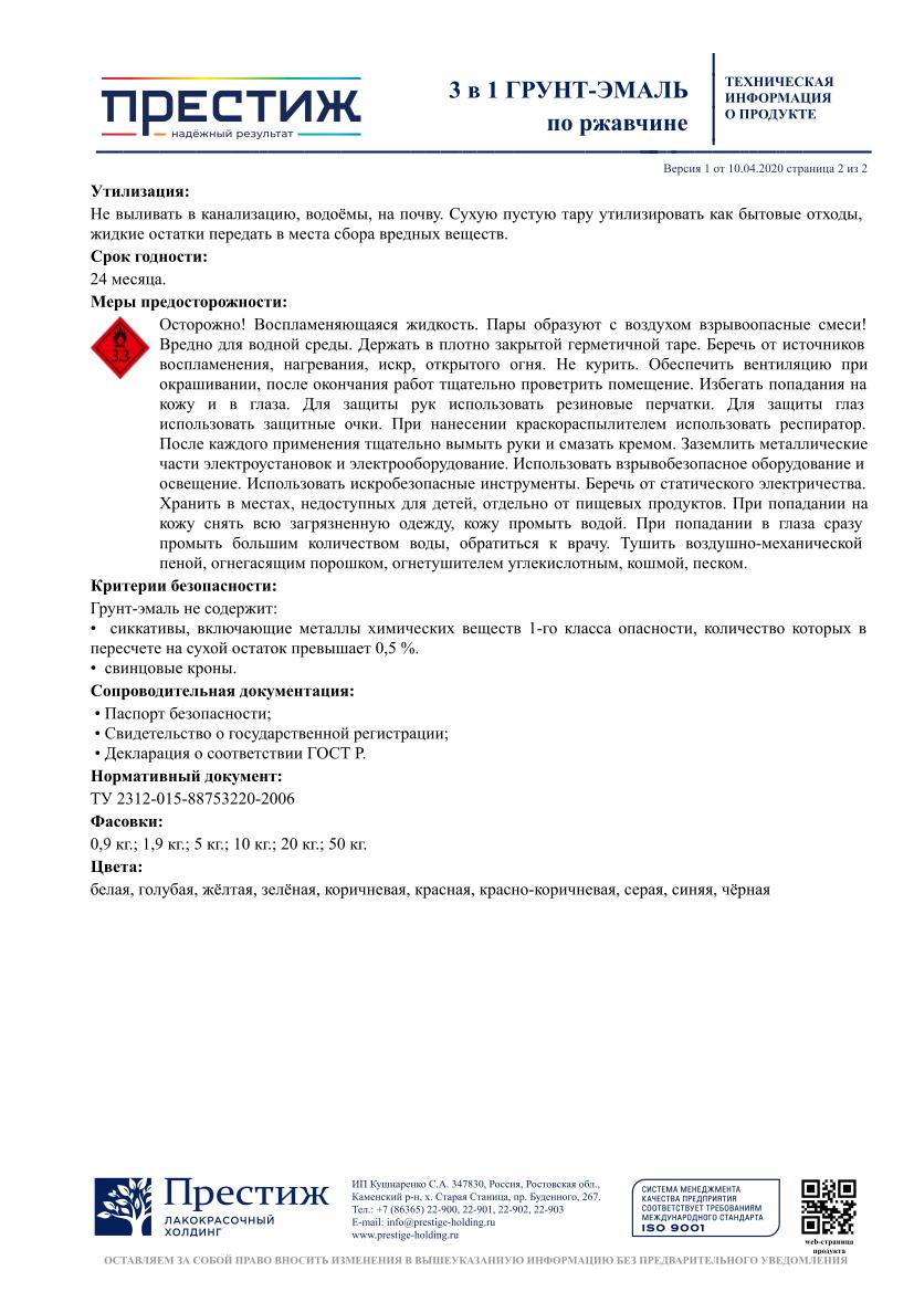 Грунт-эмаль по ржавчине ПРЕСТИЖ зеленая 5кг
