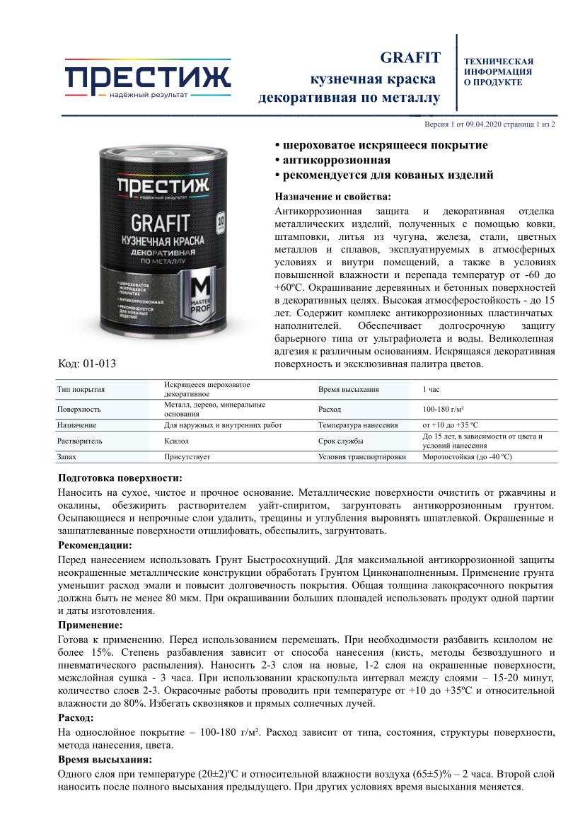 Краска GRAFIT кузнечная ПРЕСТИЖ бордовая 0,9кг