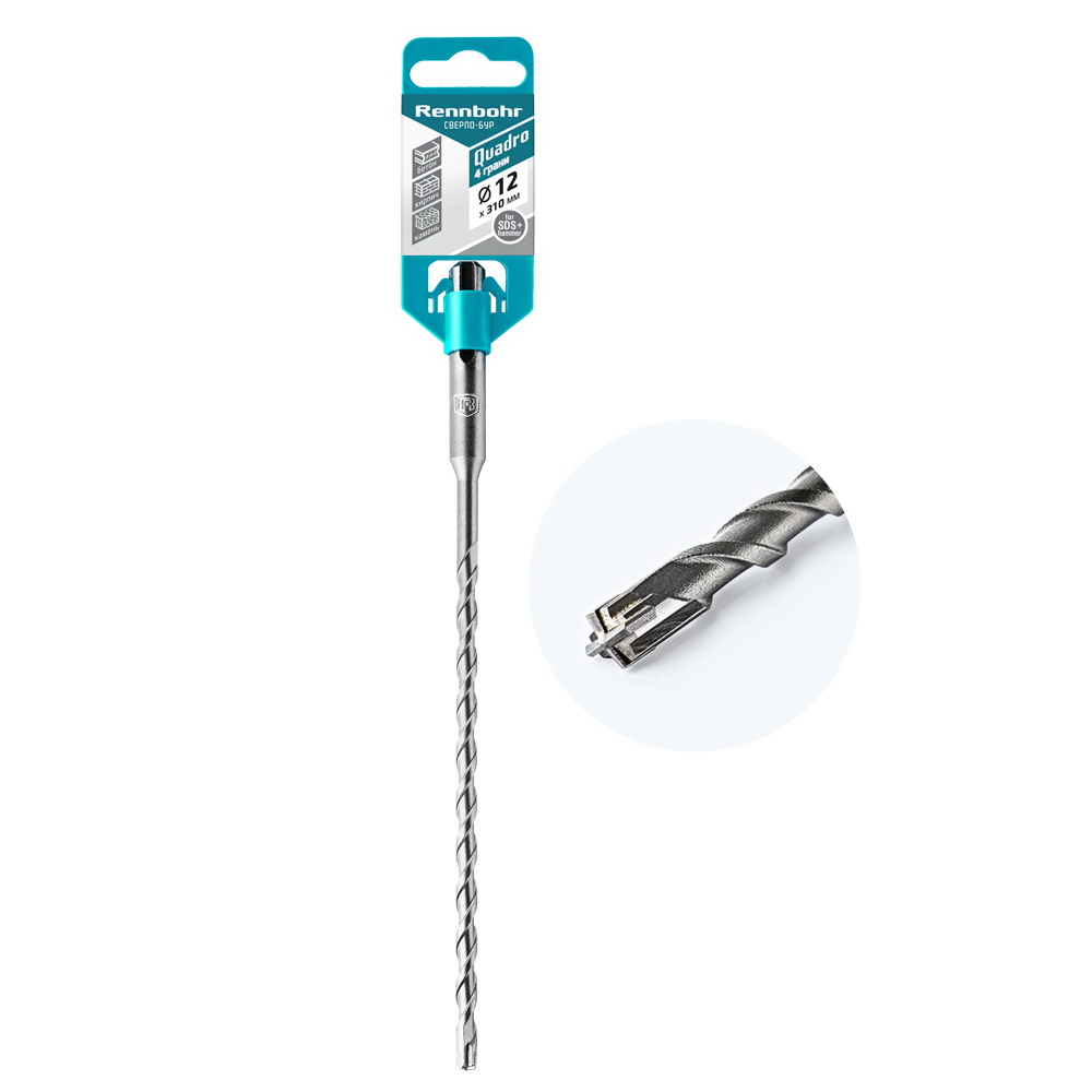 Бур по бетону SDS+ 12х310 4 грани Rennbohr Quadro