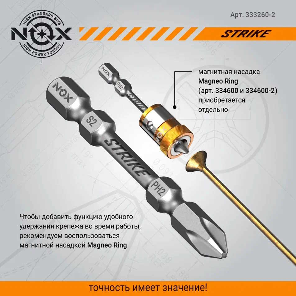 Биты NOX изготовлены методом фрезеровки , что обеспечивает точность формы биты в соответствии со стандартом DIN и гарантирует высокий ресурс биты.