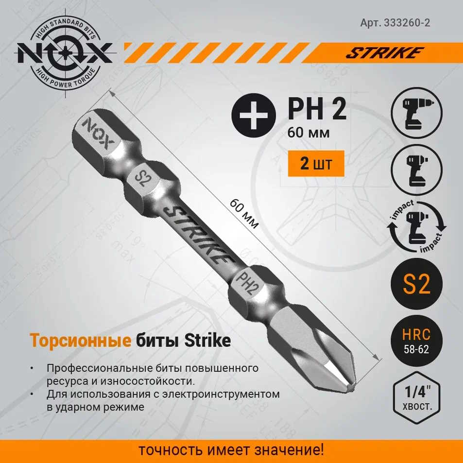 Бита impact PH2-60 E6.3, 2шт карта STRIKE