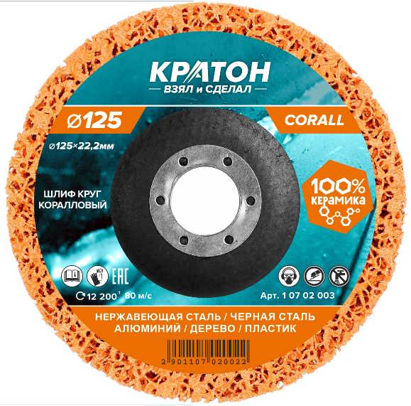 Круг кораловый шлифовальный Кратон оранжевый 125мм Р46