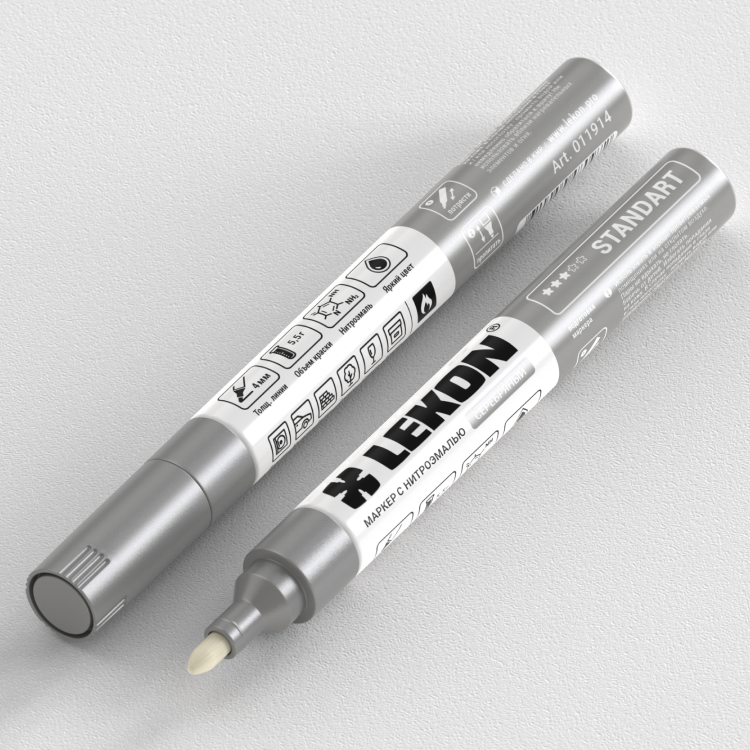 Маркер LEKON Standart с нитроэмалью 4 мм цвет серебро