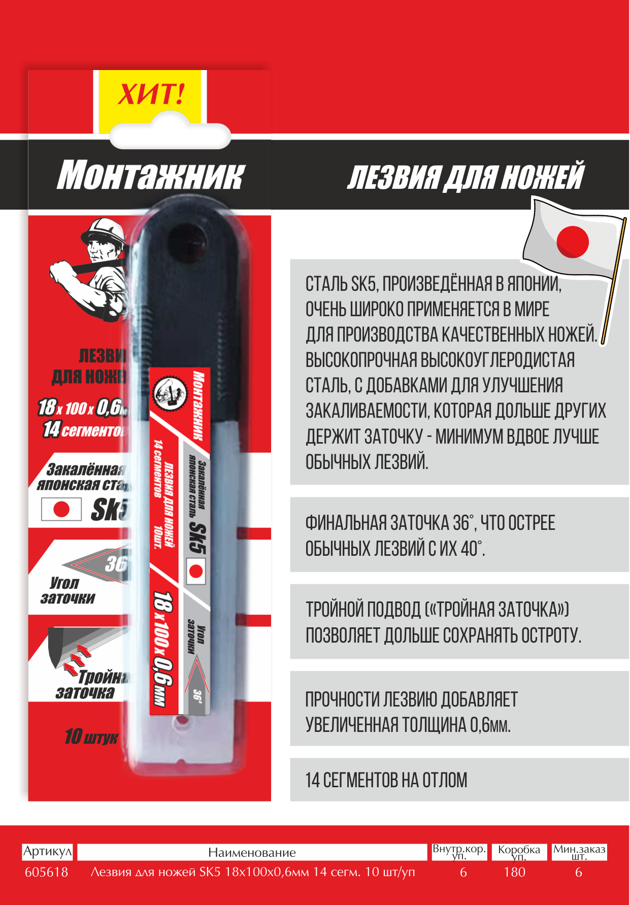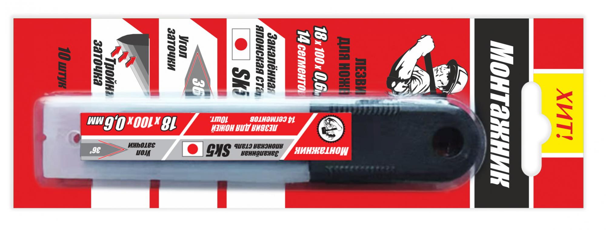 Лезвия для ножей SK5 18х100х0,6мм 14 сегментов 10 шт/уп "Монтажник"