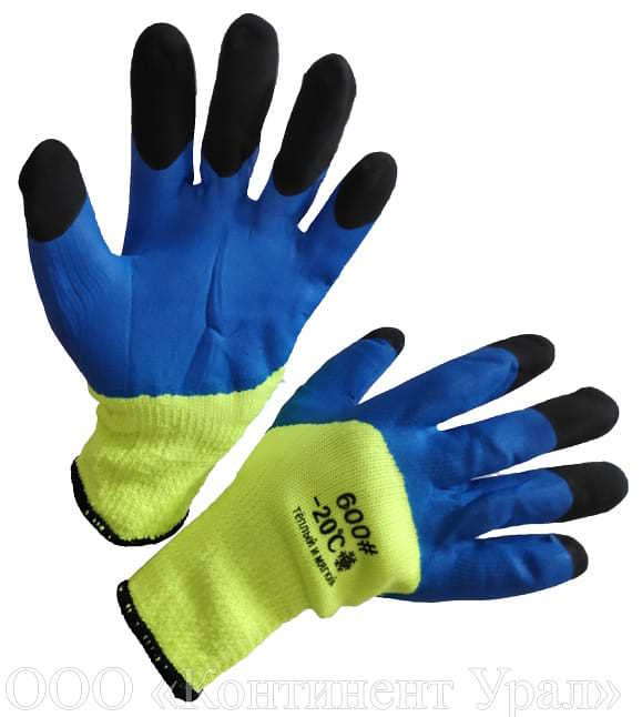 Перчатки утепленные 600 облитые вспененным латексом (черно-салатовый цвет)
