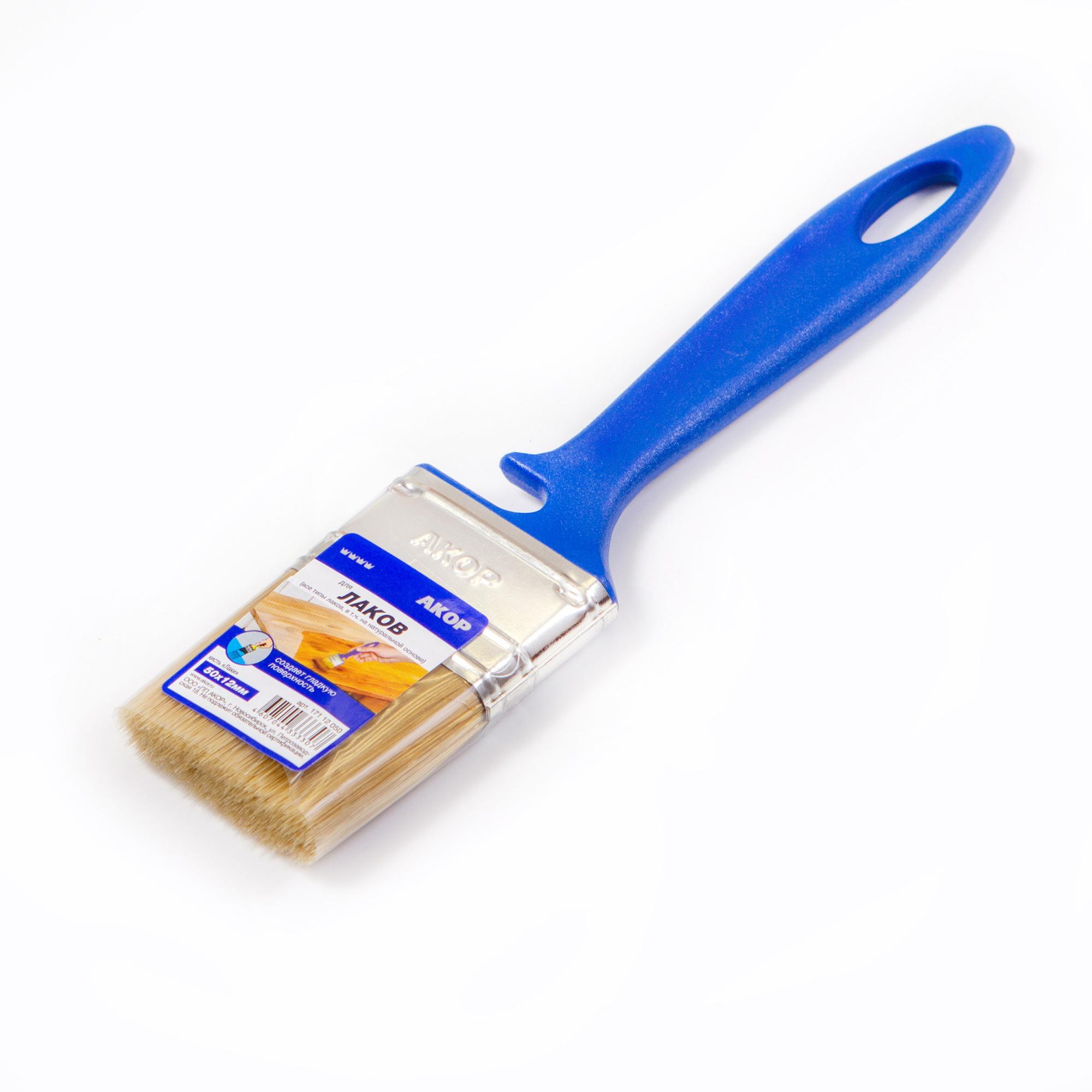 Кисть плоская Лаки 50*12 синтетическая щетина, пластиковая синяя ручка АКОР