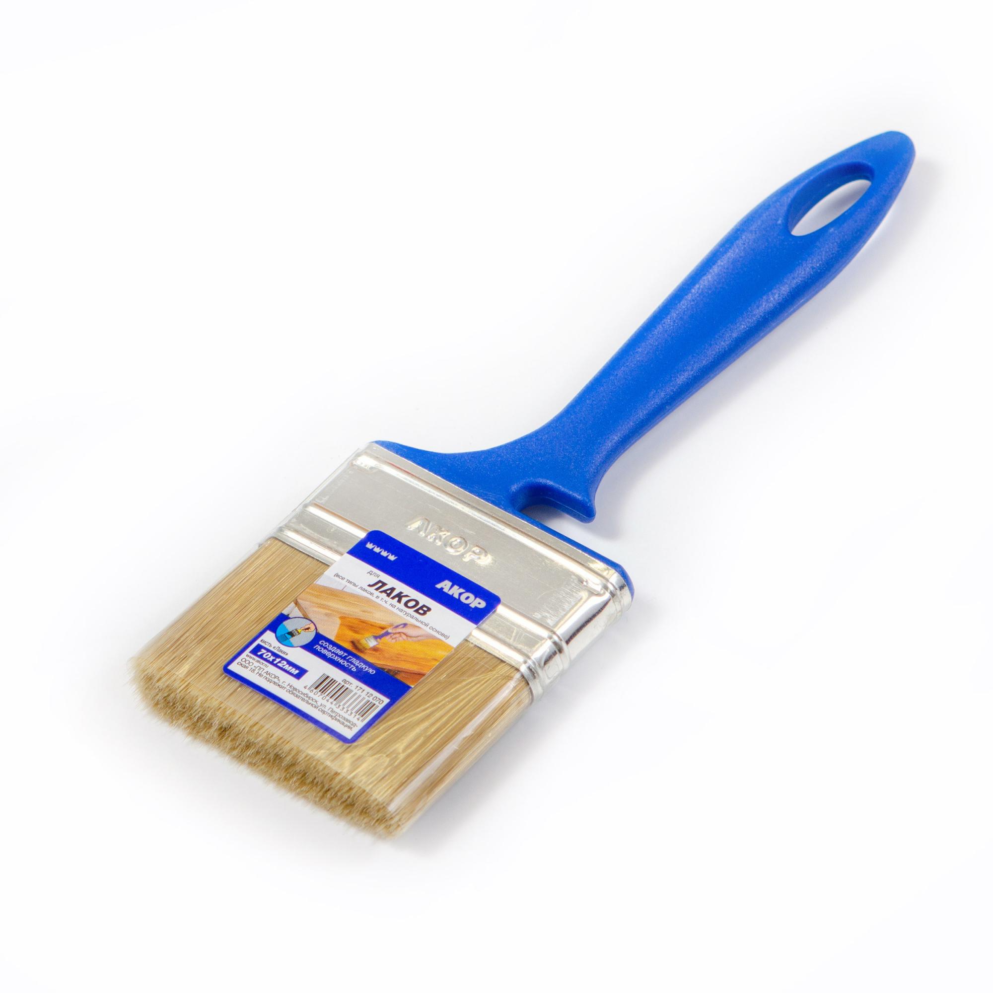 Кисть плоская Лаки 70*12 синтетическая щетина, пластиковая синяя ручка АКОР