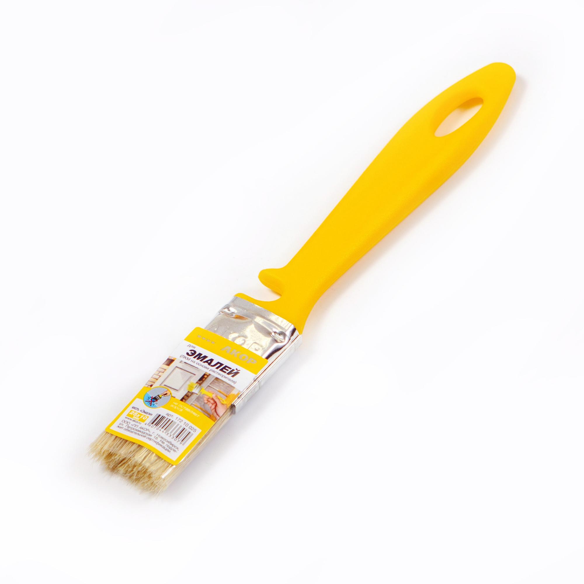Кисть плоская Эмаль 25*10 светлая щетина, пластиковая желтая ручка АКОР