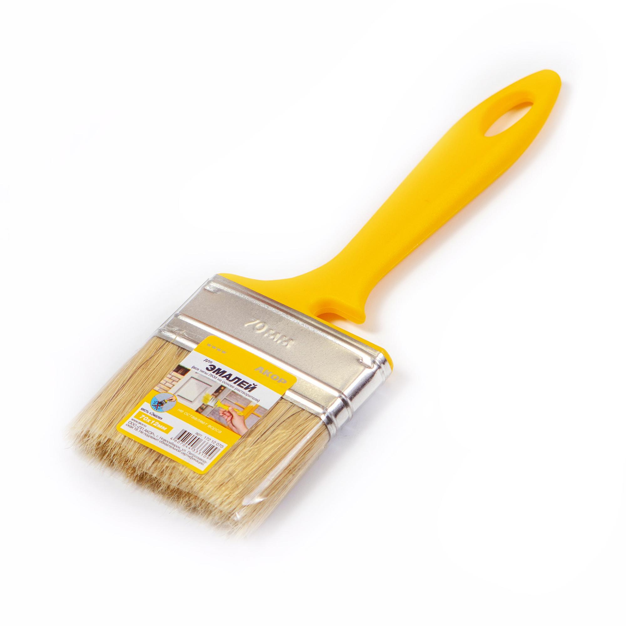 Кисть плоская Эмаль 70*12 светлая щетина, пластиковая желтая ручка АКОР
