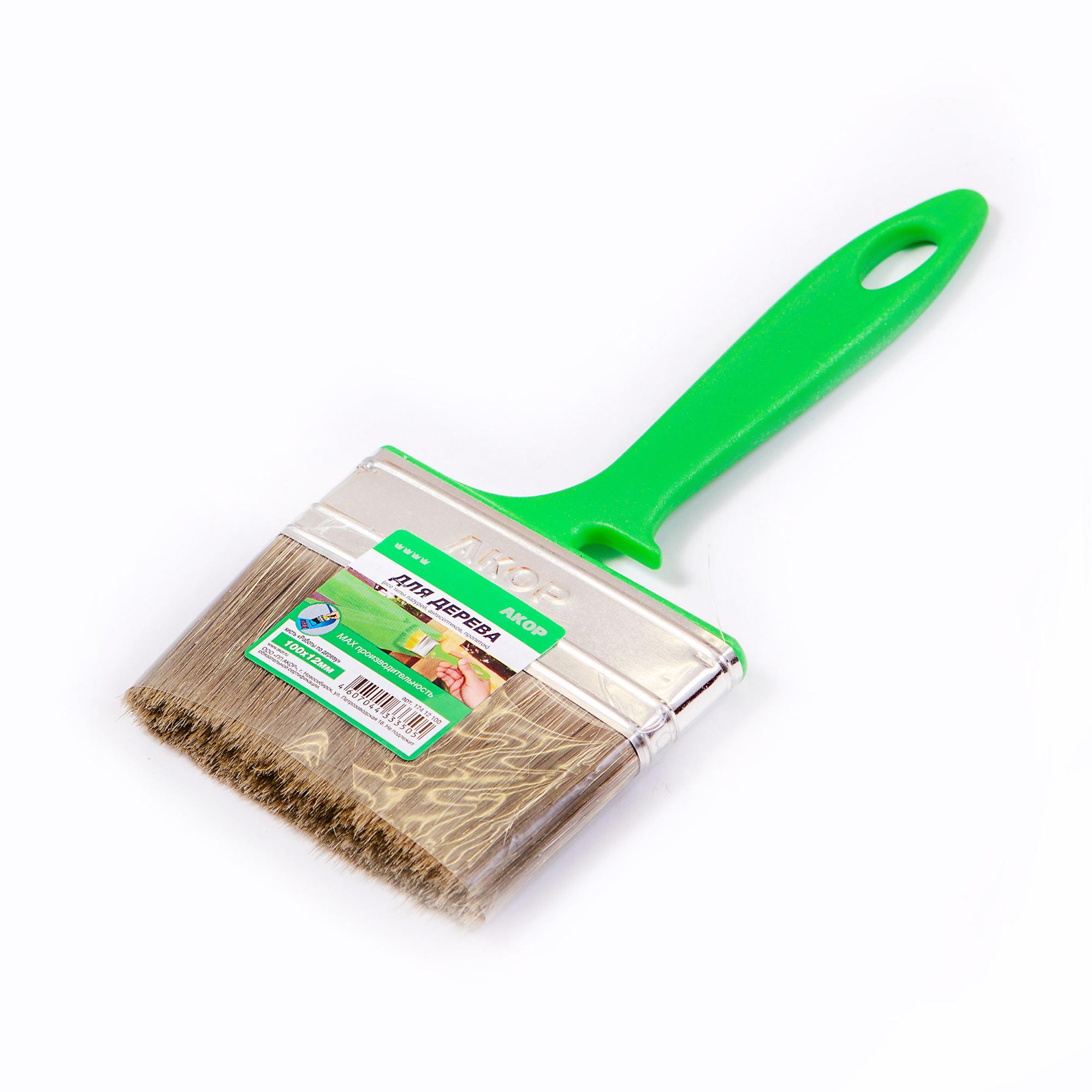 Кисть плоская Работы по дереву 100*12 смешанная щетина, пластиковая зеленая ручка АКОР