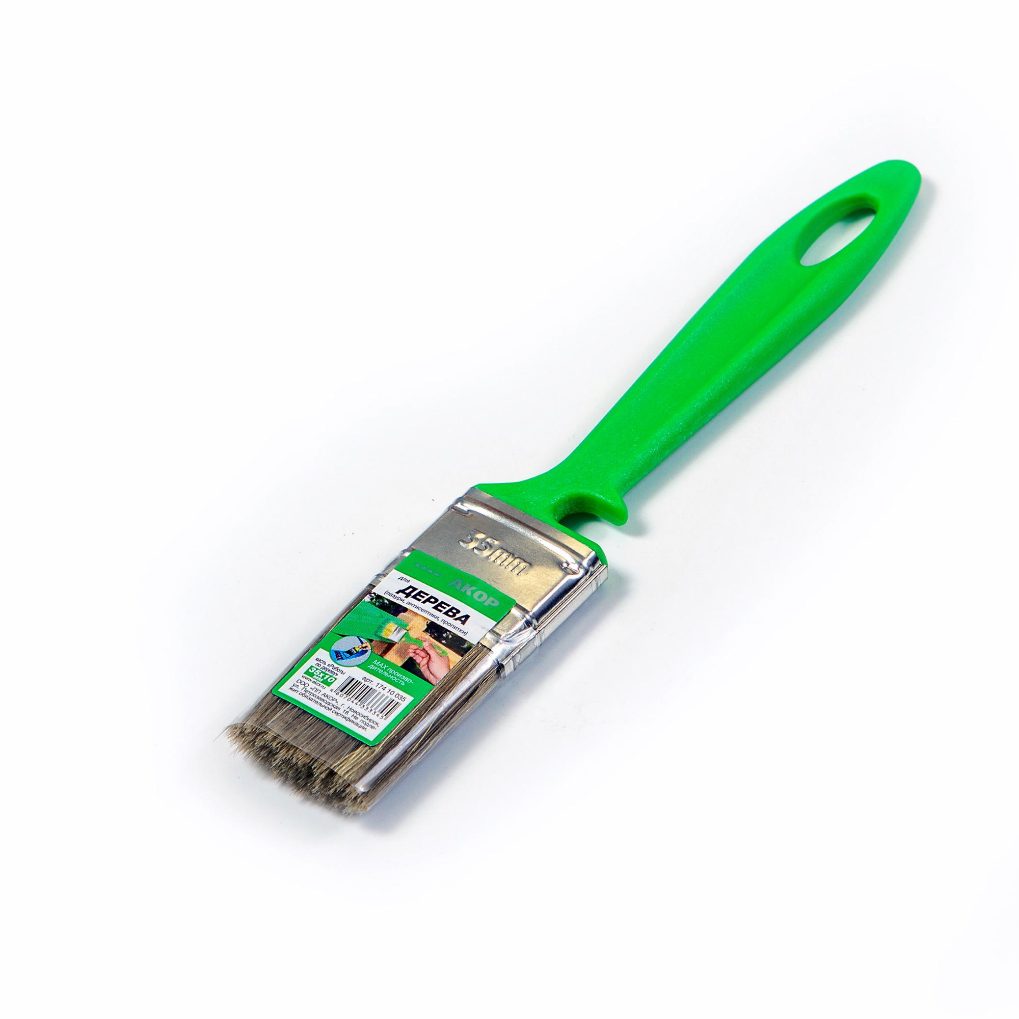 Кисть плоская Работы по дереву 35*10 смешанная щетина, пластиковая зеленая ручка АКОР