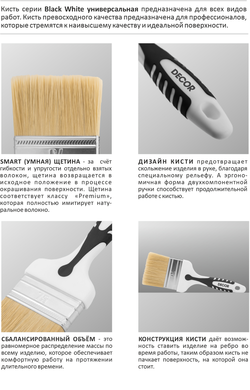 Кисть универсальная 75х15 мм, светлый смешанный ворс, 2 компонентная ручка DECOR Б.В.