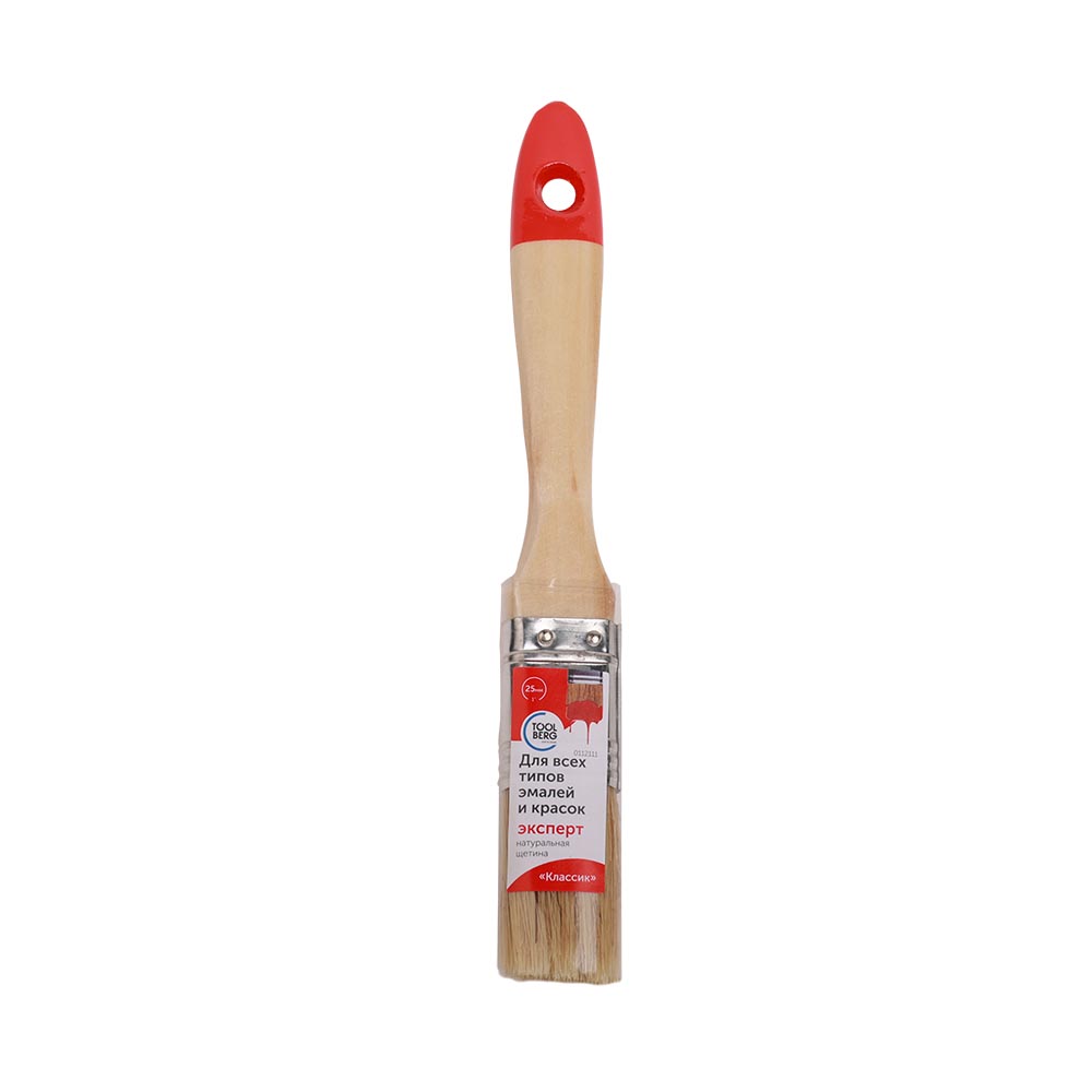 Кисть плоская Классик-Эксперт 25мм натуральная светлая щетина, деревянная ручка TOOLBERG