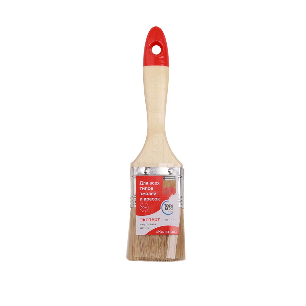 Кисть плоская Классик-Эксперт 50мм натуральная светлая щетина, деревянная ручка TOOLBERG