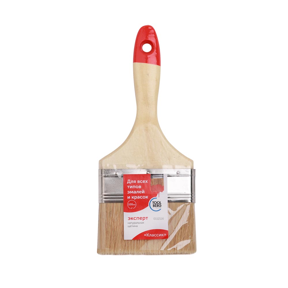 Кисть плоская Классик-Эксперт 100мм натуральная светлая щетина, деревянная ручка TOOLBERG