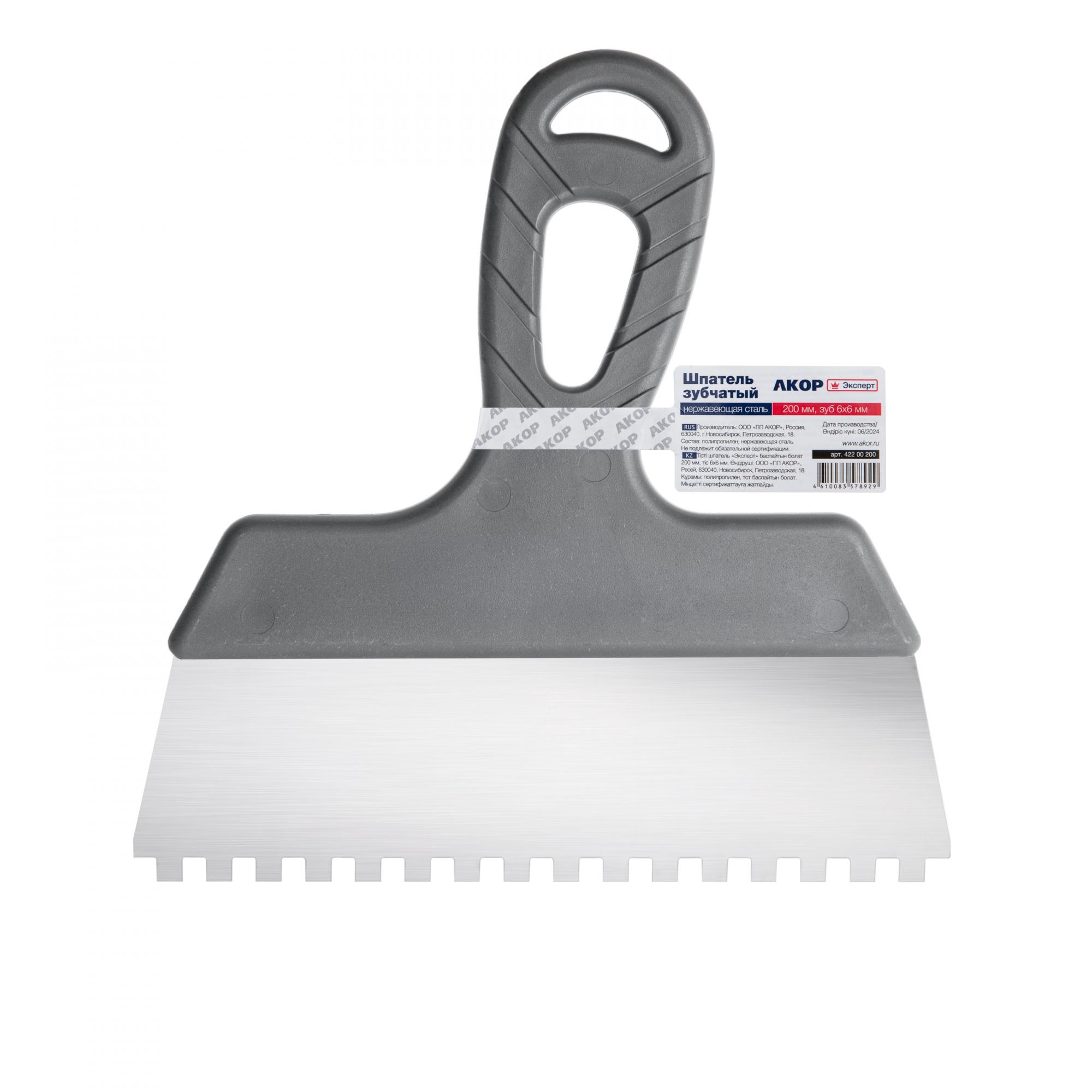 Шпатель зубчатый «Эксперт» из нержавеющей стали 200мм, 6х6мм