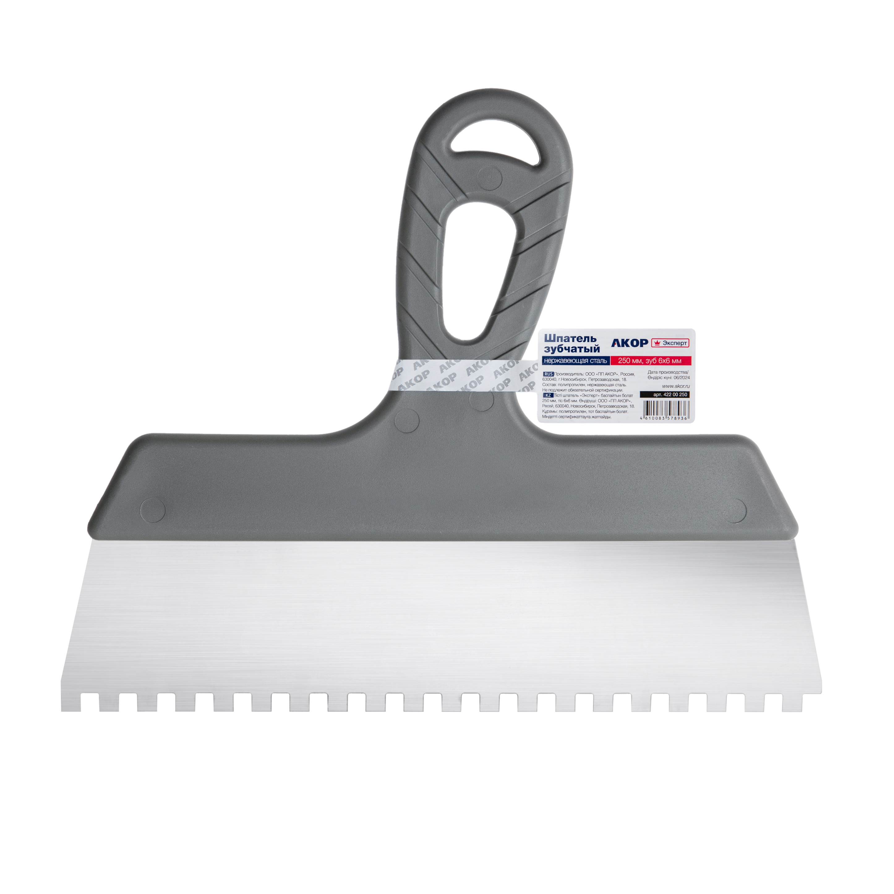 Шпатель зубчатый Эксперт 250мм, 6х6мм, нержавеющая сталь