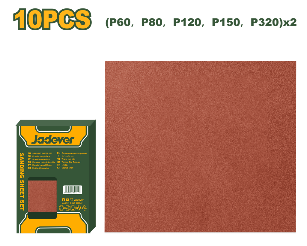 Набор шлифлистов 230*280мм (Р60*2, Р80*2, Р120*2, Р150*2, Р320*2) 10шт/набор JADEVER