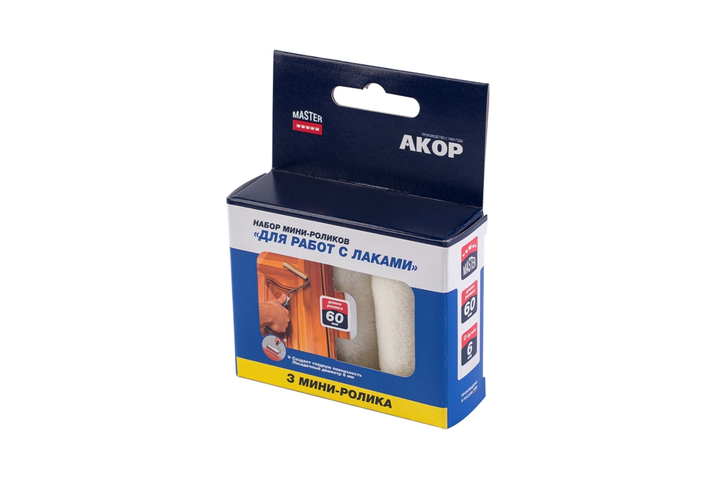 Набор мини-роликов Для работ с Лаками 60мм, SELF BOX 3шт Акор