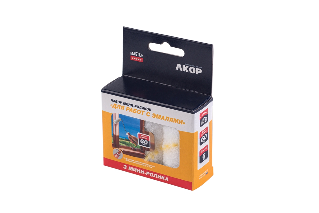 Набор мини-роликов Для работ с Эмалями 60мм, SELF BOX 3шт Акор