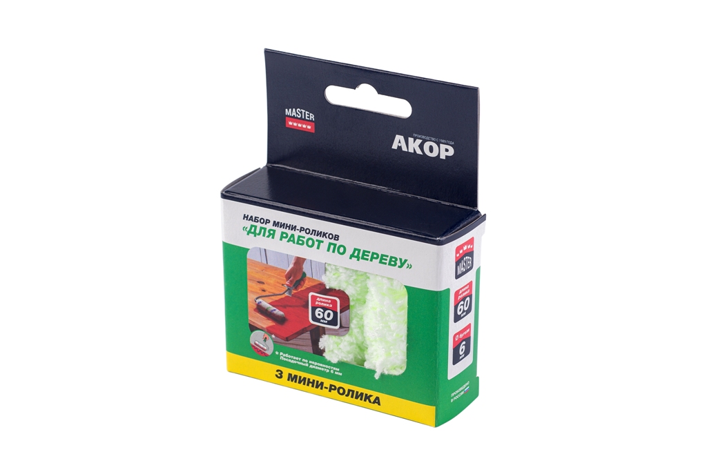 Набор мини-роликов Для работ по Дереву 60мм, SELF BOX 3шт Акор