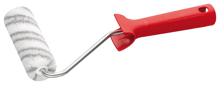 Валик в сборе 10 см полиэстер, серые полосы, ворс 12мм, d15, 1К изогнутнутая ручка Колор Эксперт