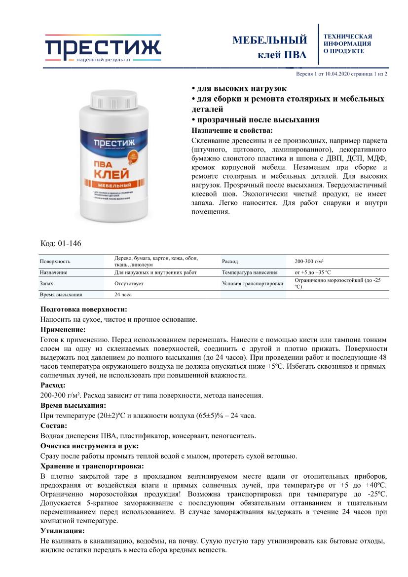 Клей ПВА мебельный ПРЕСТИЖ 3кг