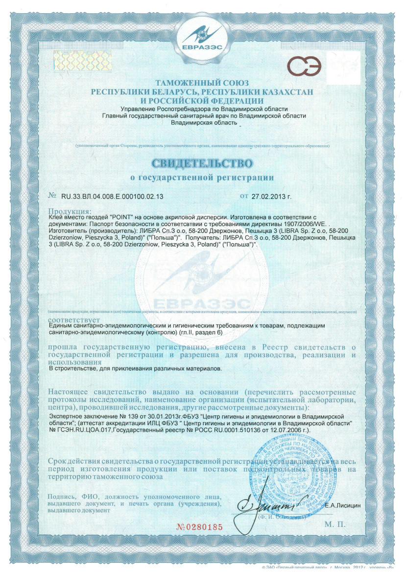 Жидкие гвозди POINT 95 на основе акриловой дисперсии 280 мл (Тегра)