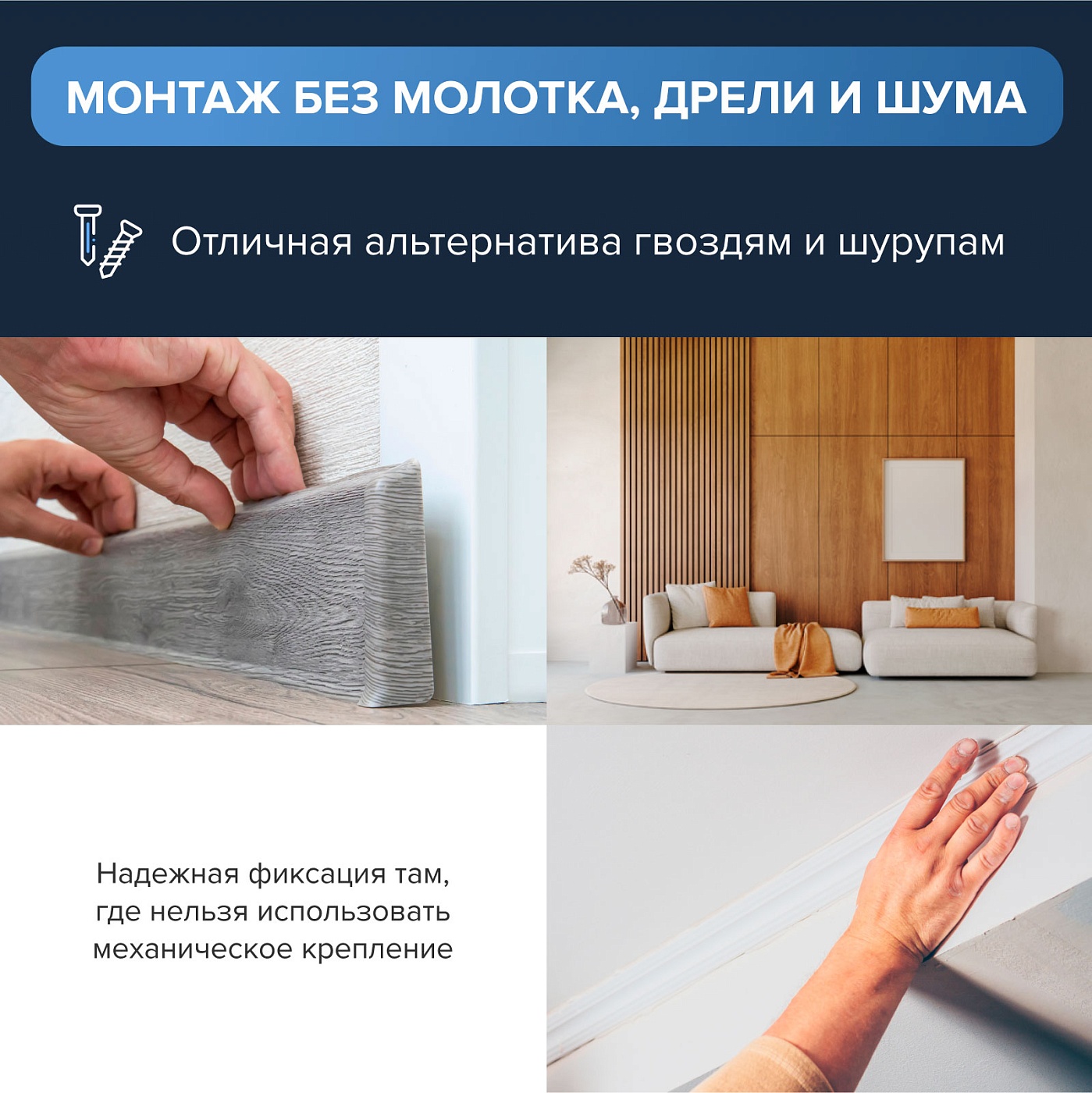 Для приклеивания декоративных элементов, плинтусов, стекла, цветной керамики, панелей |