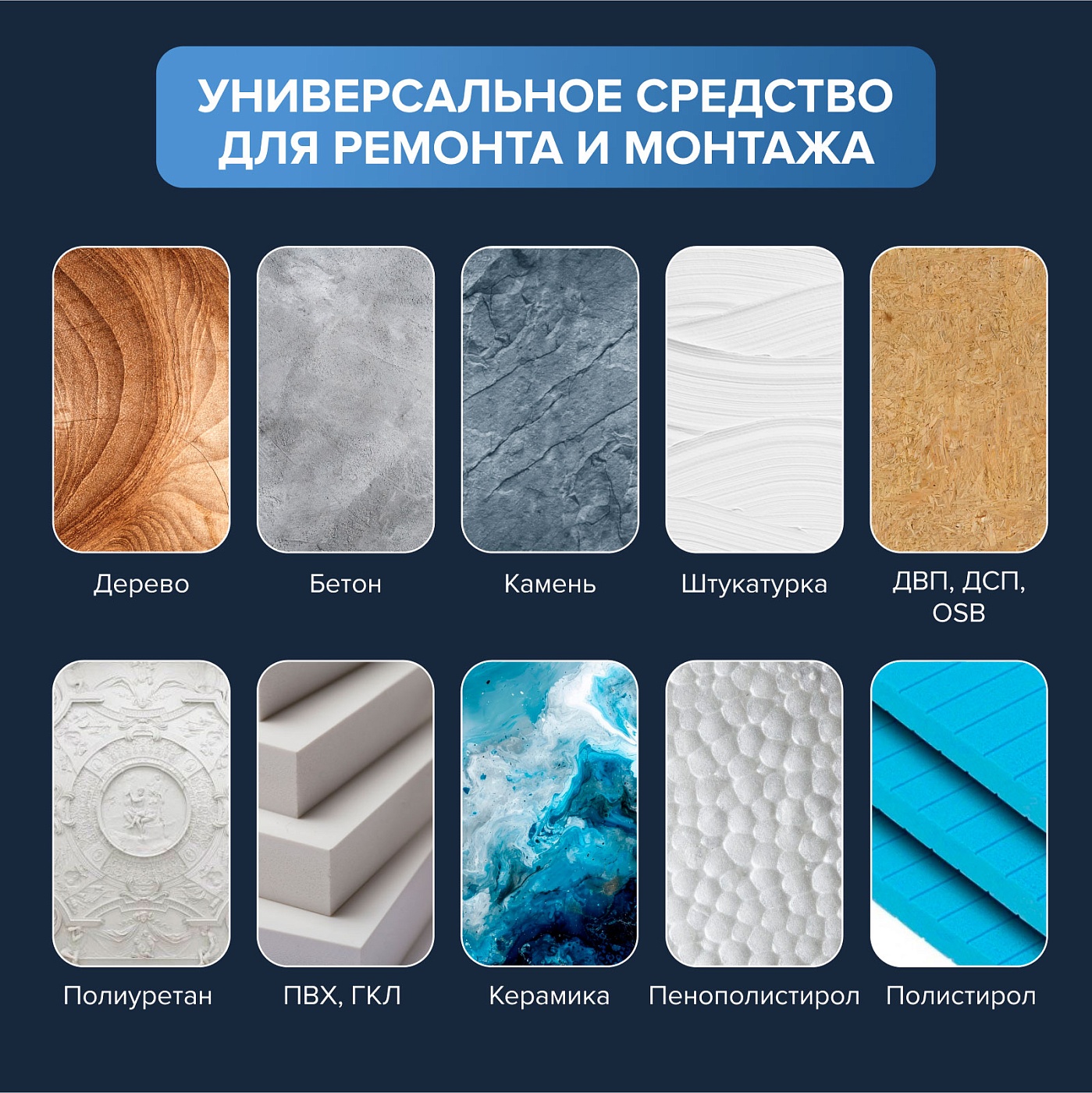 -высокая адгезия к большинству строительных материалов.