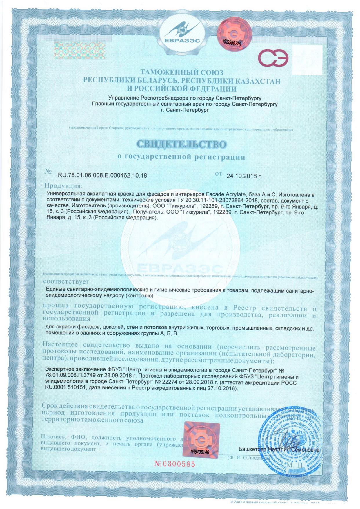 Краска фасадная TIKKIVALA Facade Acrylate база A глубокоматовая 0,9 л