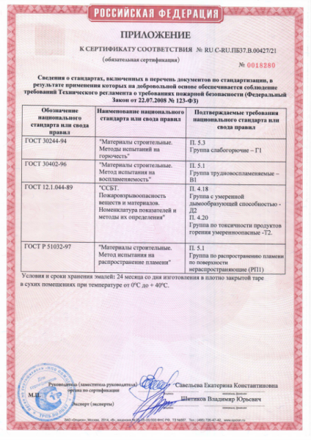 Время высыхания: до «отлипа» – 2 часа, полное высыхание через 24 часа.